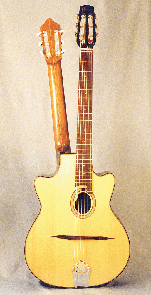 The first delivery was for guitarist-composer Pierre Chaze in February 1979, seduced by the Gibson model with sympathetic strings played by John McLaughlin. Since then, a dozen have been made, designed differently for the number of sympathetic strings and their length, the design of the fingerboard, the saddle, classical or Indian style etc....